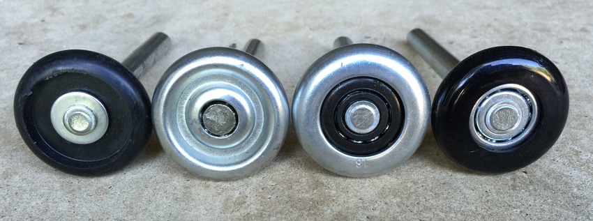 Garage door rollers are small wheels mounted on a shaft that allow your door to slide smoothly along the vertical tracks during opening and closing. Each roller consists of a wheel that rotates around a bearing, mounted on a stem that attaches to the door through a hinge or bracket. A standard residential garage door has 10-12 rollers positioned along both sides of the door. These components support the door's weight as it moves up and down, ensuring smooth operation and proper alignment. The top roller on each side guides the door into the horizontal track portion along the ceiling. When garage door rollers function properly, your door operates quietly and smoothly. However, worn rollers create noise, cause jerky movement, and put excessive strain on the garage door opener and spring system. Regular maintenance and timely roller replacement are essential for the life of your garage door.